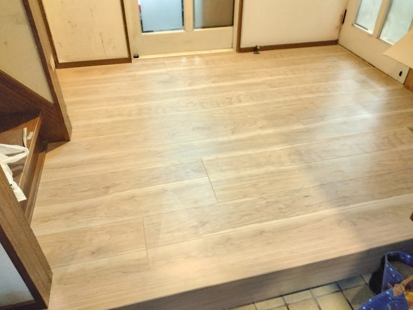 玄関まわりのフローリングの工事(上張り)