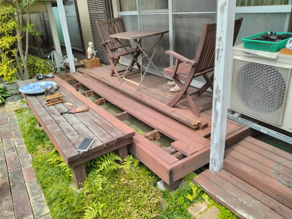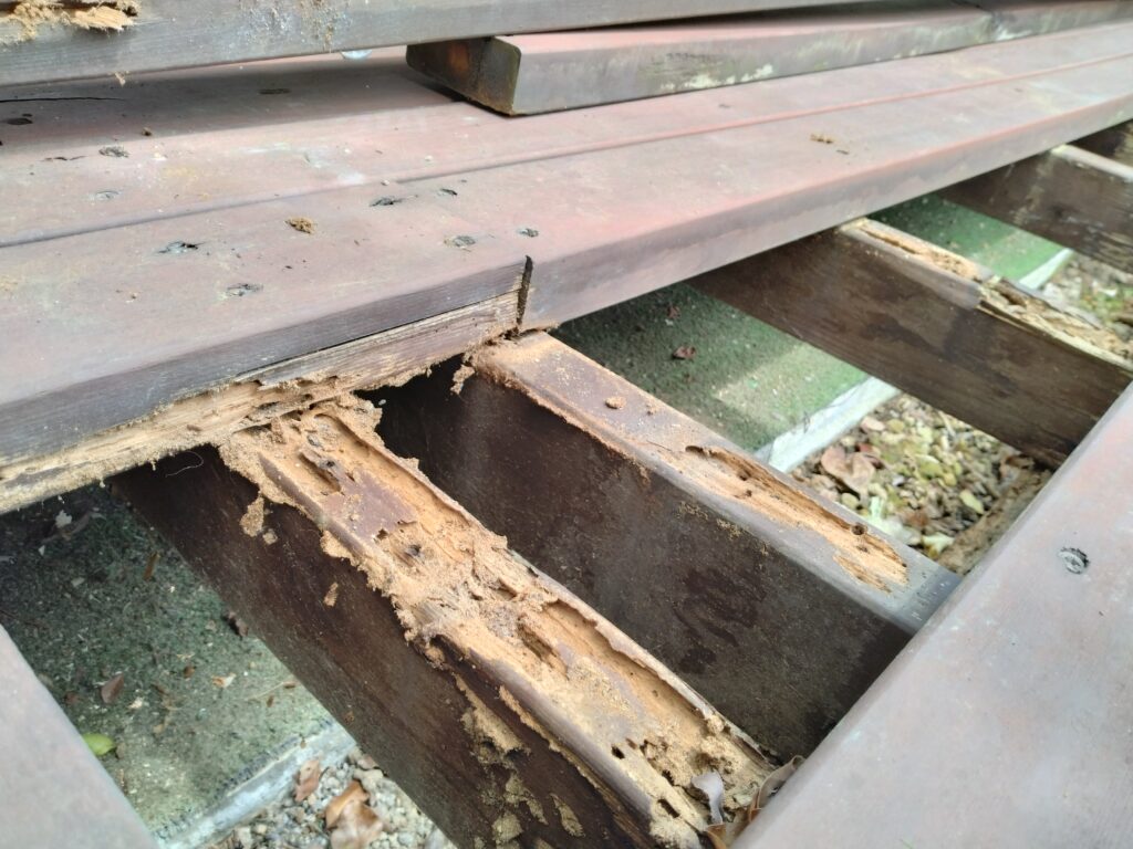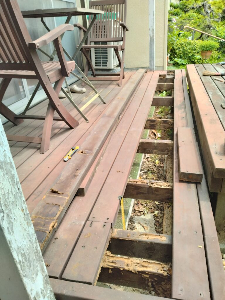ウッドデッキの部材の一部が腐ってしまい、シロアリが発生していました